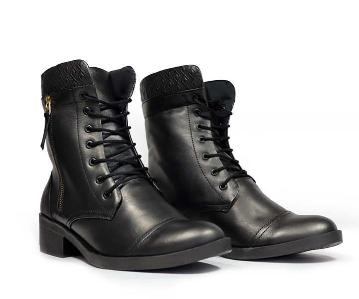 Cordonera clásica, corte en la puntera, en la parte superior cuero con repujado en rombos